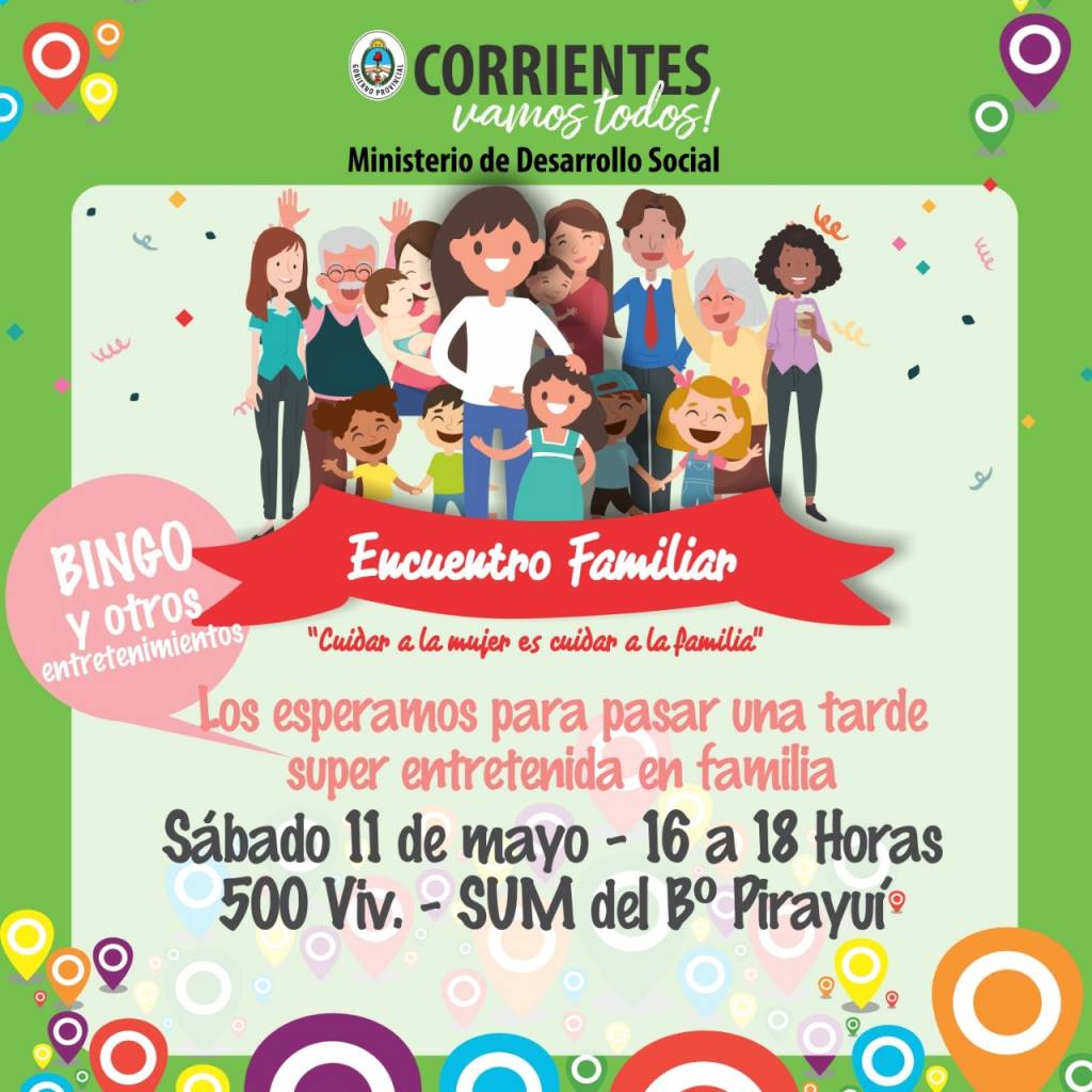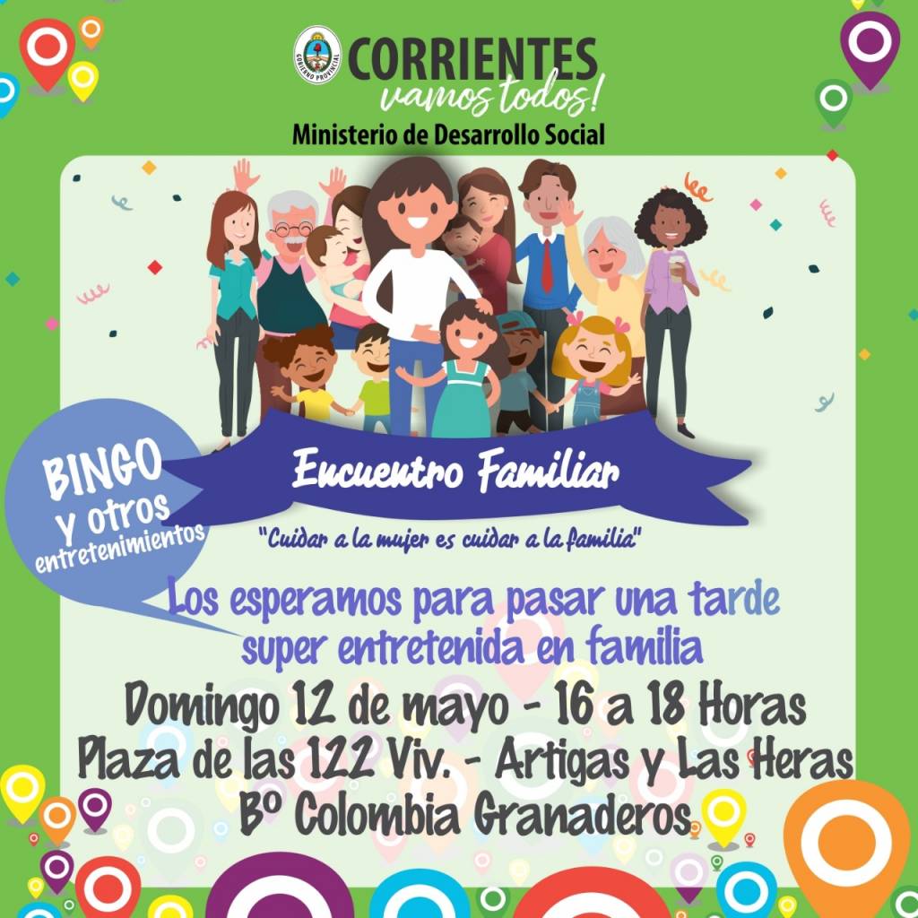 Generando actividades de participación social y comunitaria el Ministerio llevara a cabo un Te Bingo, para compartir con las familias en los barrios, este Sábado 11 de Mayo será en las 500 Viv, en el salón de usos múltiples del Bº Pirayui, de 16 a 18 horas, y el Domingo 12 en el Bº Colombia Granaderos, en la Plaza 122 Viv. ubicada en Avda. Santa Rosa y Las Heras.