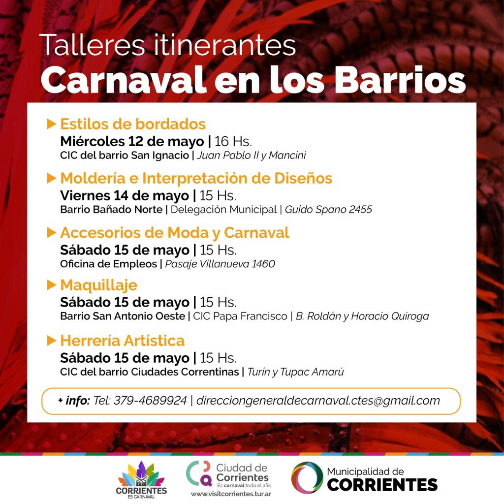 Para recibir más información, los interesados podrán comunicarse al 3794-689924; o bien mandar un mail a: direcciongeneraldecarnaval.ctes@gmail.com