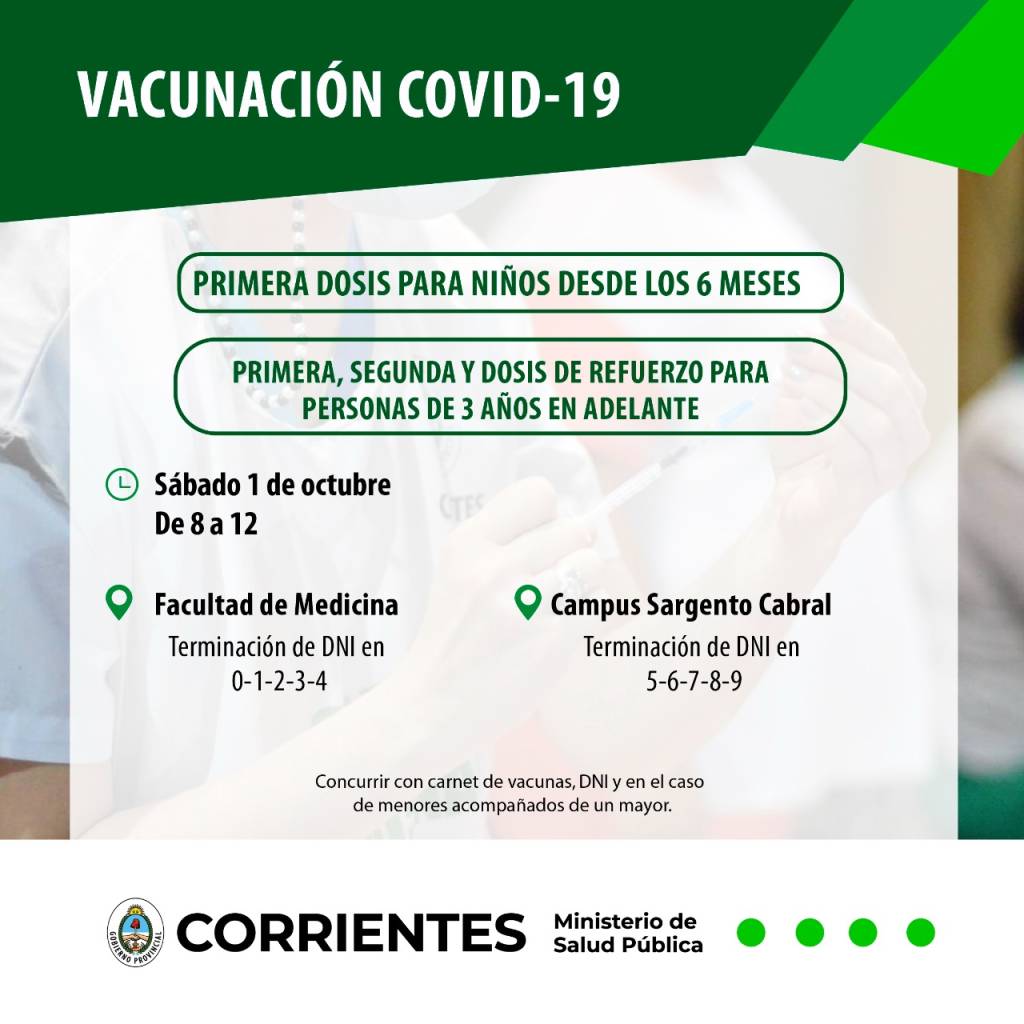 Se recuerda concurrir con DNI y carnet de vacunación. En caso de menores, acompañados por un mayor.