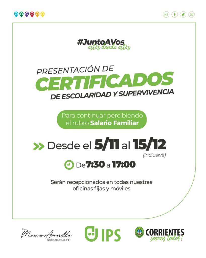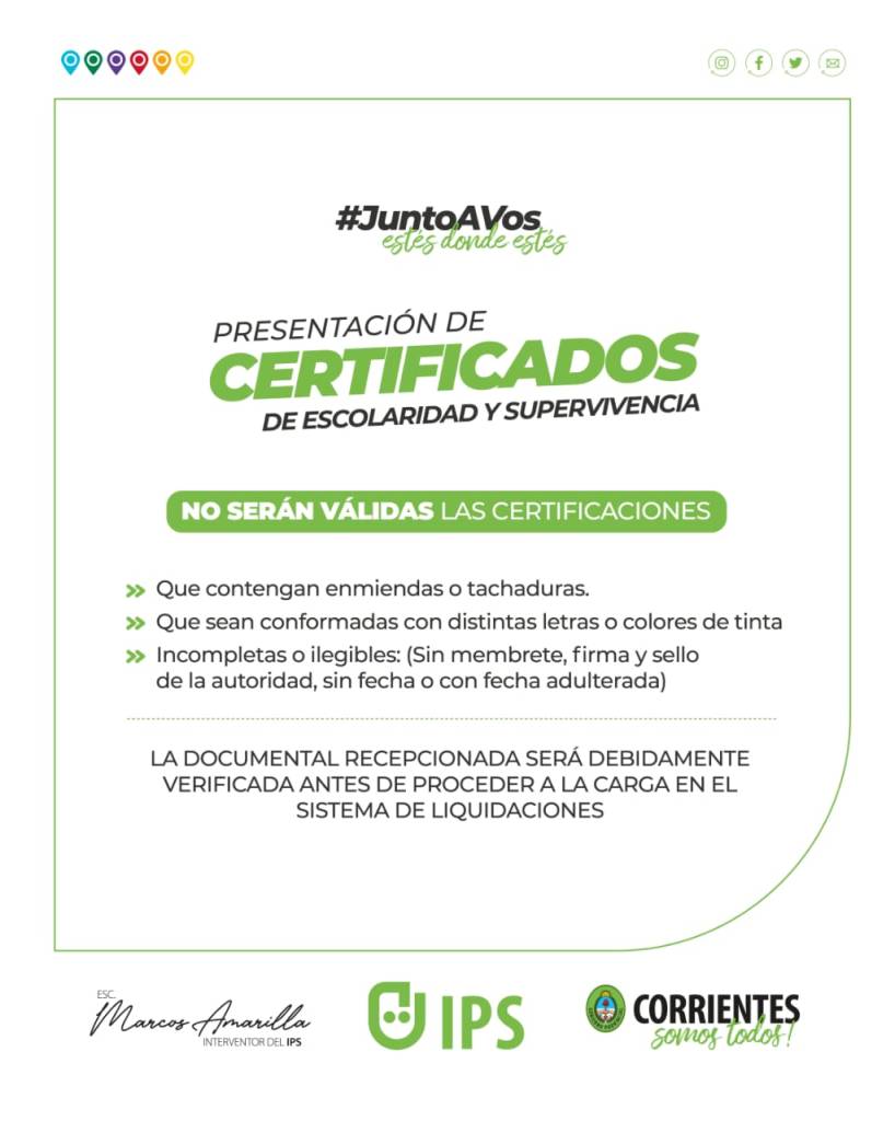 Además, quienes deseen emitir certificaciones vía web deben ser en formato PDF, con la firma digital o código QR a beneficiarios.ips@corrientes.gob.ar.