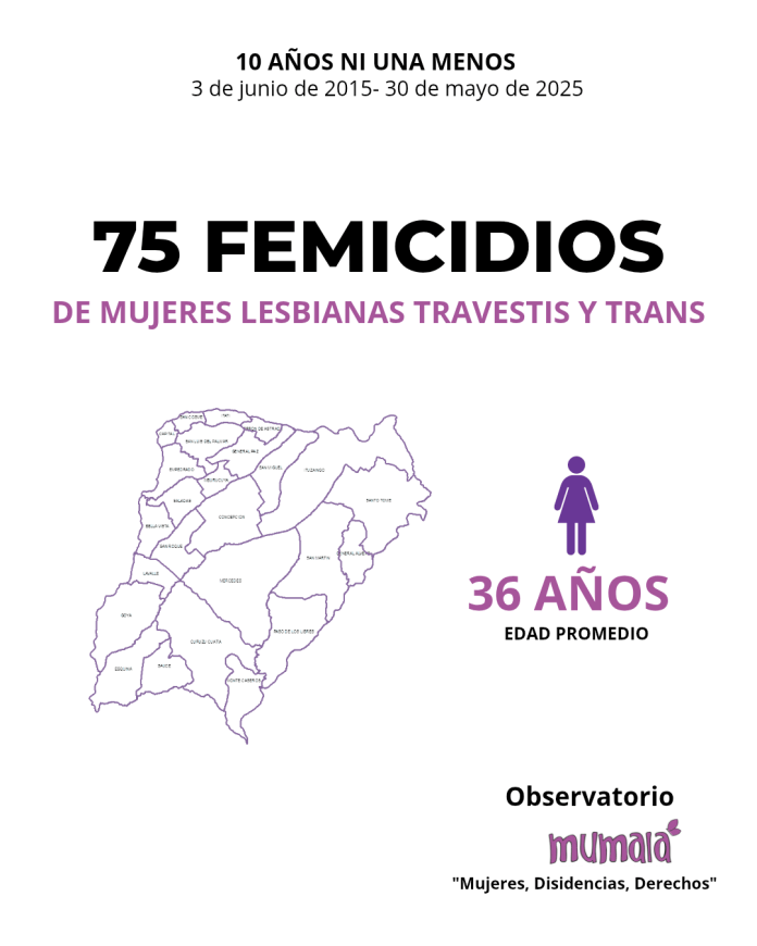 A una década de la histórica movilización que dio origen al movimiento Ni Una Menos, la organización MuMaLá Corrientes presentó un informe provincial que revela una cruda realidad: entre el 1 de junio de 2015 y el 30 de mayo de 2025 se registraron 75 femicidios, femicidios vinculados y trans/travesticidios en la provincia.
