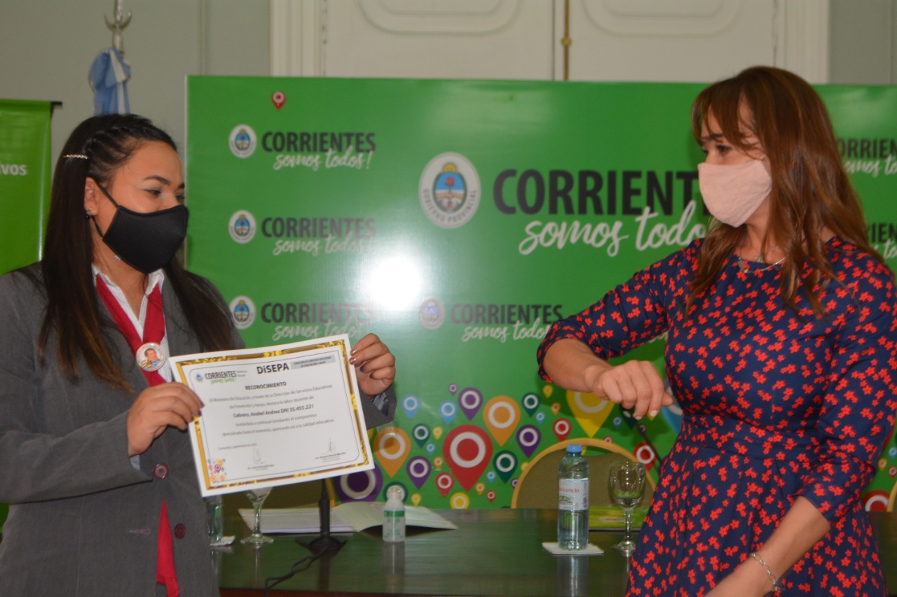 Cabe destacar que, para reconocerlos, se establecieron los siguientes criterios referidos a la nueva manera de enseñar y aprender. Valerse de estrategias relacionadas a la utilización de recursos tecnológicos para la transformación de mensajes de acompañamiento afectivo a los estudiantes y familias ante la situación de aislamiento social, preventivo y obligatorio solicitado por los profesionales de DiSEPA oportunamente.  Participación activa del docente en la elaboración de los mensajes de acompañamiento efectivo y experiencias docentes, difundidos a través de la página de la DiSEPA como #EmocionalmenteConectados y #ExperienciasDocentesEnPandemia. Más de 70 docentes correntinos fueron reconocidos por su labor.