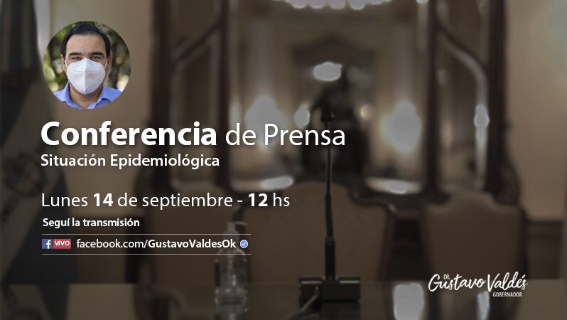 Este lunes a las 12 en Casa de Gobierno se realizará una conferencia de prensa convocada por el gobernador Gustavo Valdés para brindar detalles sobre la situación epidemiológica de la provincia de Corrientes.