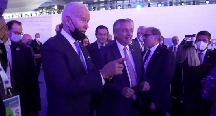 Alberto Fernández y Joseph Biden durante un encuentro informal en la cumbre del G20 que se celebró el año pasado en Roma