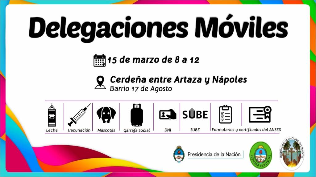 Una vez más el operativo de Delegaciones Móviles de la Municipalidad de la ciudad de Corrientes llegará como todos los viernes a un nuevo barrio capitalino, en esta oportunidad será este viernes en el barrio 17 de agosto.