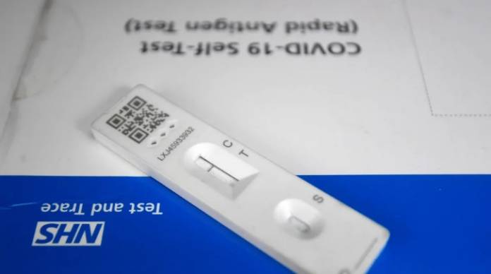 A coronavirus disease (COVID-19) antigen self-test kit is seen in this illustration photo, amidst the spread of the coronavirus disease (COVID-19) pandemic, in London, Britain, December 29, 2021. REUTERS/Toby Melville