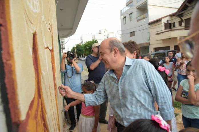 Hoy viernes a las 20:30 hs se inaugurará el primer mural participativo del programa “Las Paredes Hablan”, el vicegobernador Gustavo Canteros destacó la presencia de vecinos durante el desarrollo de la obra, diciendo que esto es el resultado de la sumatoria de esfuerzo del vecino aportante del muro del barrio Camba Cua.