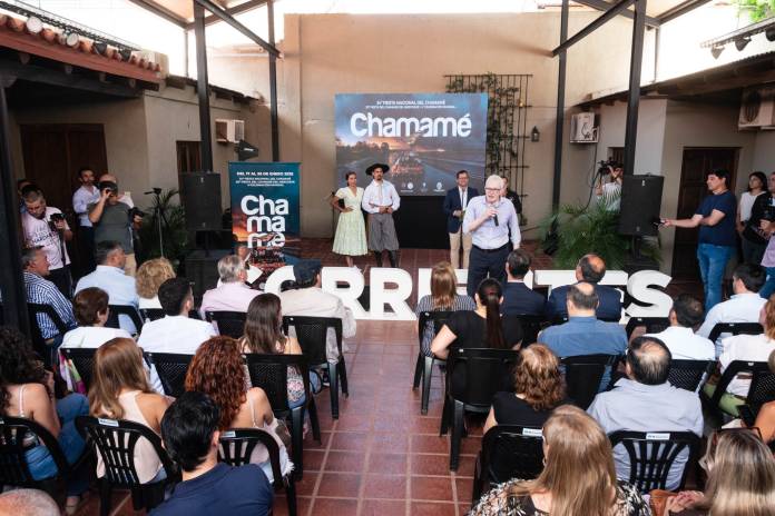 Esta mañana en el Patio de la Cultura Marité Salas del Instituto de Cultura de Corrientes se llevó a cabo el Lanzamiento Oficial de la 34ª Fiesta Nacional del Chamamé, 20ª Fiesta del Chamamé del MERCOSUR y 4ª Celebración Mundial, con importantes anuncios vinculados a la programación artística –por orden alfabético-, la venta de entradas y la impronta que tendrá esta edición “Chamamé, avío del alma”: Además de autoridades, acompañaron la presentación músicos, bailarines, gestores culturales y comunicadores que apoyan a esta Fiesta Grande, a desarrollarse del 17 al 26 de enero de 2025.