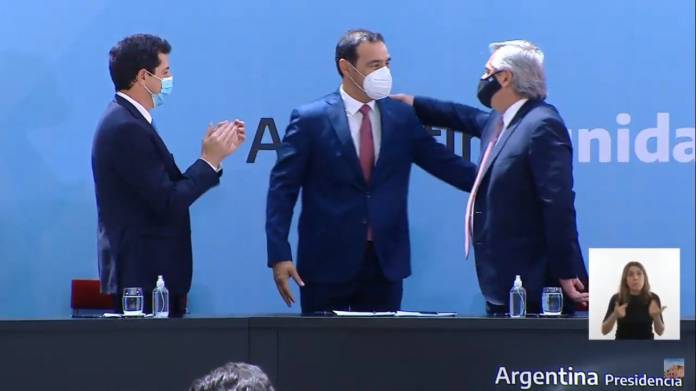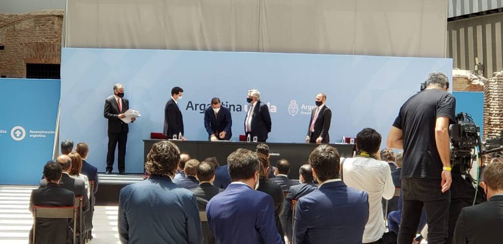 El acto encabezado por el presidente Fernández contó con la participación de los ministros de Economía Martín Guzman, del Interior Wado de Pedro, el jefe de Gabinete Santiago Cafiero y el presidente de la Cámara de Diputados de la Nación Sergio Massa, entre otros.