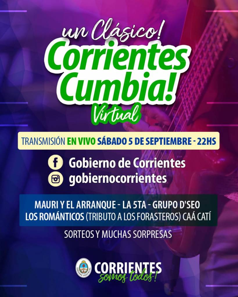 Mañana se llevará adelante una nueva jornada a través del programa oficial que ofrece el Gobierno de manera virtual, el cual ya se ha convertido en un encuentro habitual de los fines de semana para todos los correntinos, como es el “Corrientes Cumbia”.