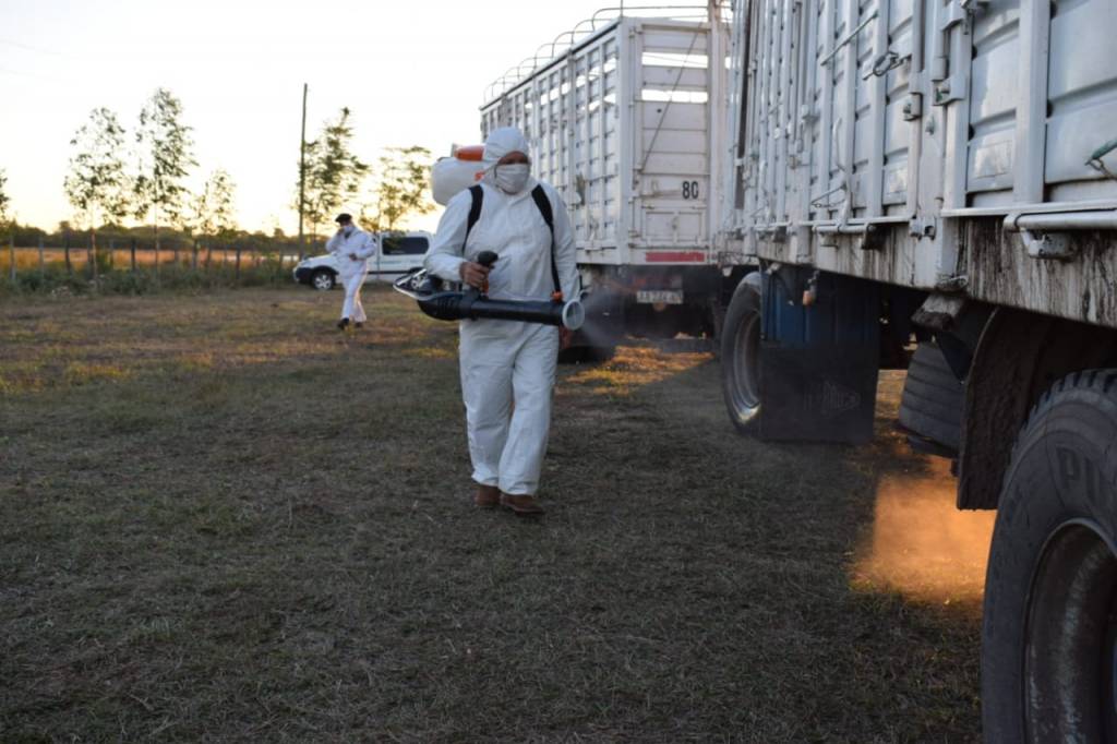 Por otro lado, todos los vehículos que ingresan a la Sociedad Rural de Saladas, con personal o animales, son desinfectados a su ingreso, mediante la pulverización con mochila, la cual tiene desinfectante para minimizar los riesgos de la enfermedad.