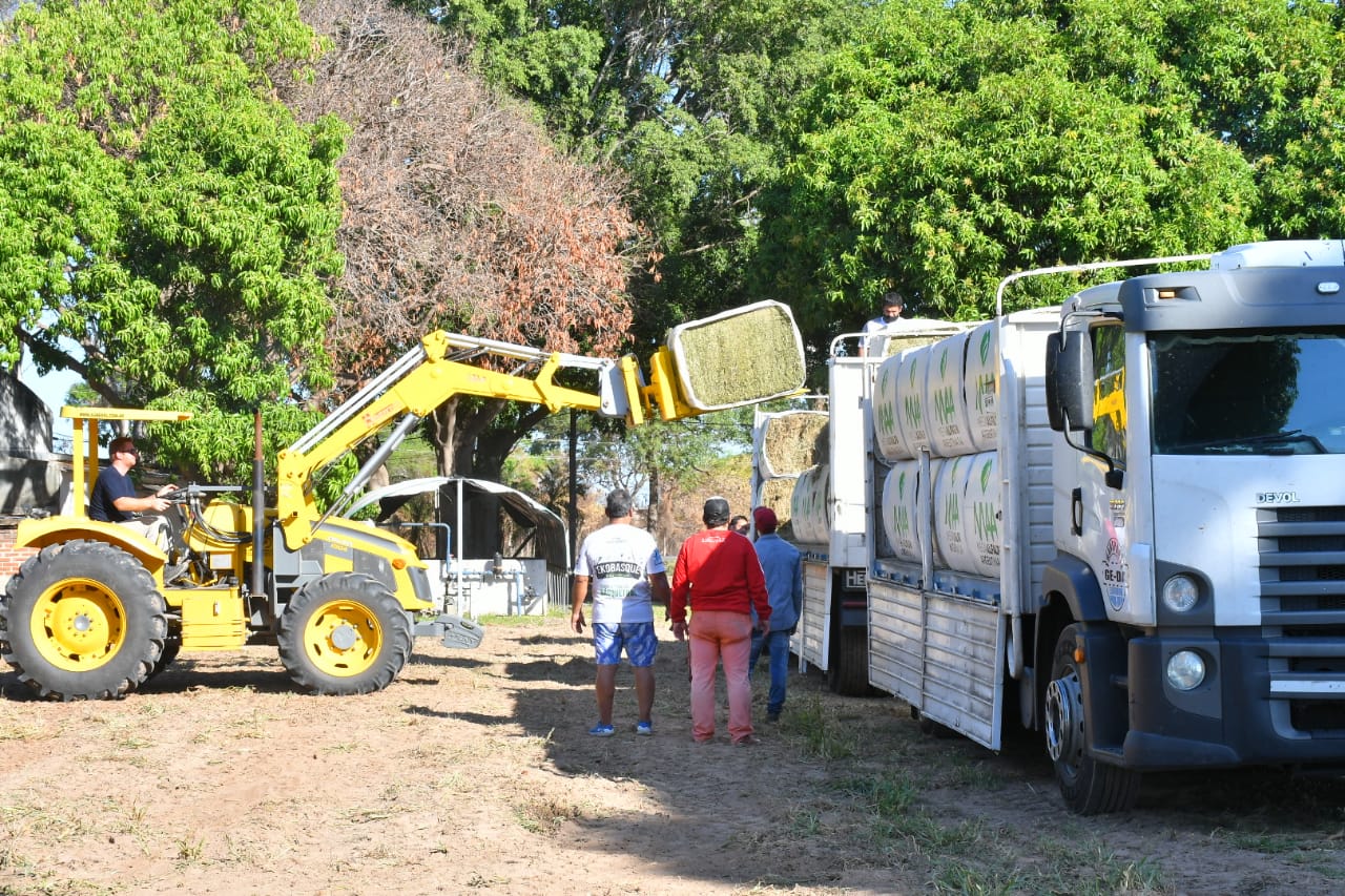 Desde el Centro Tecnológico de la Producción (CTPro), el titular de la cartera destacó la ayuda del Gobierno de Santiago del Estero a través de la llegada de 20 camiones con la provisión de mega-fardos de 450 kg (c/u) de alfalfa y fardos convencionales. En total son cerca de 500 toneladas de alimento para ir distribuyendo a los municipios afectados por la situación ígnea.