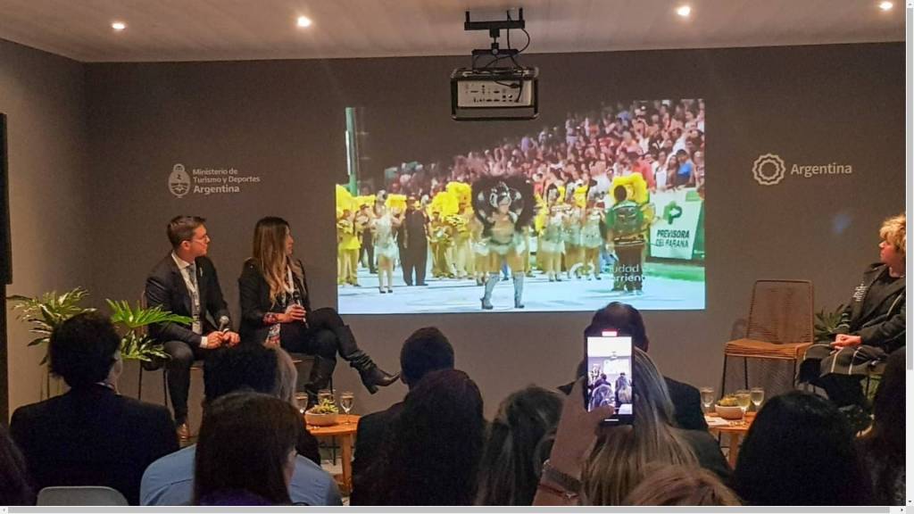 La jornada comenzó con la presentación de la Fiesta Nacional del Carnaval Correntino en el Auditorio del Ministerio de Turismo de Nación. Este evento es uno de los más emblemáticos de Argentina, lleno de música, danza y color, que atrae a miles de visitantes de todo el país y el mundo durante la temporada de verano.