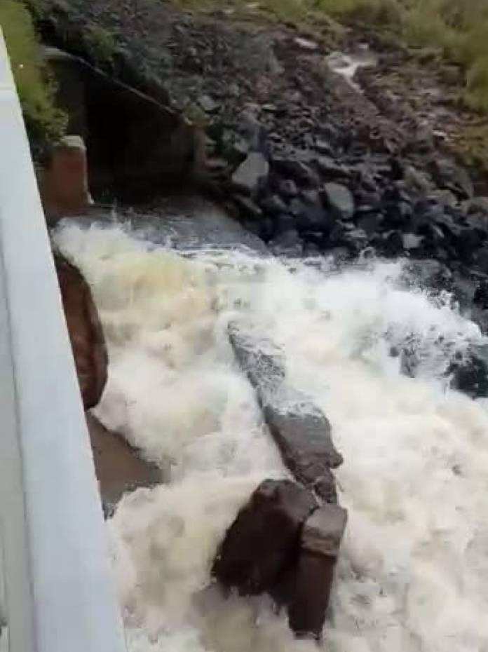 El corte es por la existencia de erosión en la fundación de alcantarilla originada por gran caudal de agua que escurre por la misma. Personal de la concesionaria vial se encuentra en el lugar del incidente y realizan tareas para habilitar el tránsito lo antes posible.