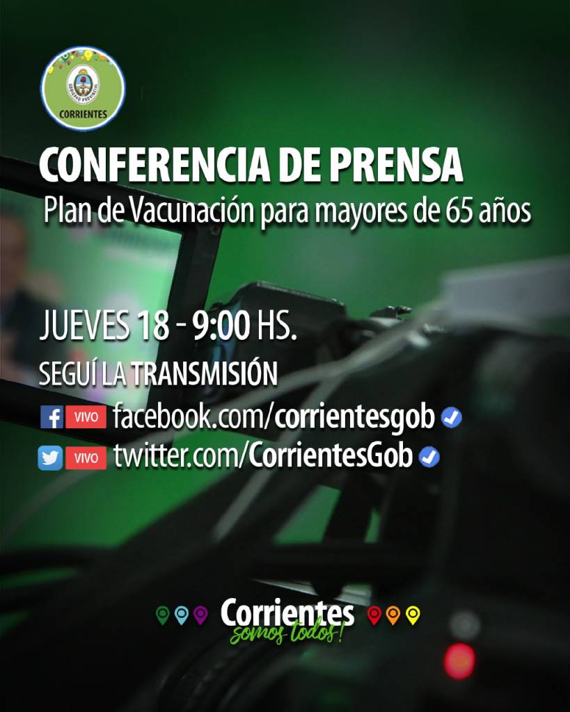 Será en el Salón Verde de Casa de Gobierno, mediante una conferencia de prensa, transmitida en vivo desde las cuentas oficiales Gobierno de Corrientes en Facebook y Twitter.