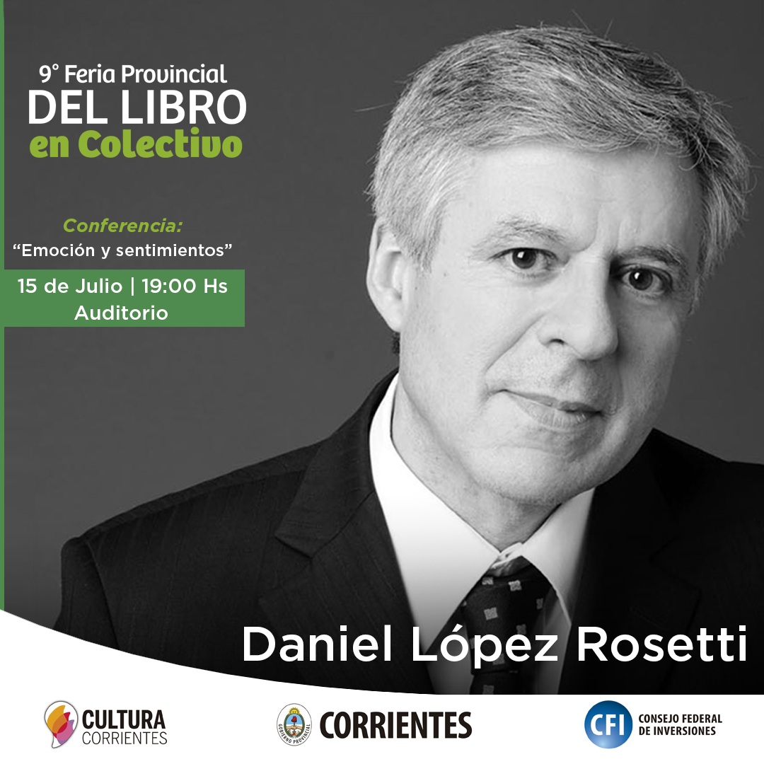El Gobierno de Corrientes –a través del Instituto de Cultura y con el apoyo del CFI- confirma nuevos invitados para la novena edición de la Feria Provincial del Libro. En esta ocasión, se trata del reconocido médico Daniel López Rosetti, quien llegará al predio ferial del Ex Regimiento 9 el día lunes 15 de julio a las 19.