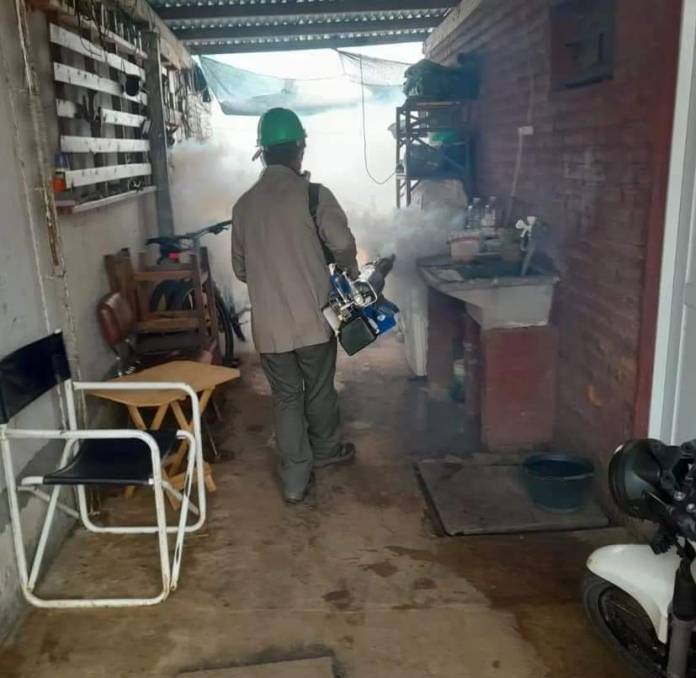 En el interior se trabaja en forma conjunta con equipos locales. Hacen control focal, búsqueda de febriles y fumigación. Estas acciones también prosiguen en la capital.