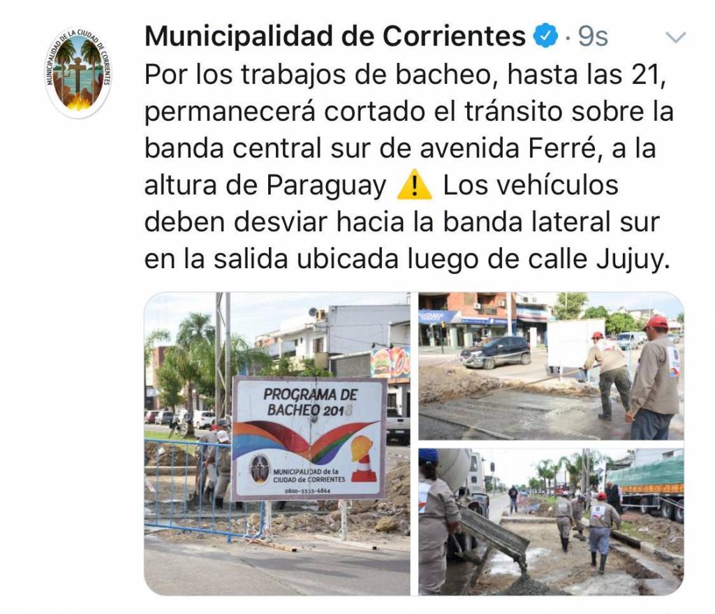 Por corte en la avenida 3 de abril y Córdoba banda central sur, se desvía el tránsito en Córdoba y rivadavia (hacia mendoza) y se desvia en la rioja y 3 de abril hacia banda lateral sur los vehículos de la banda central.