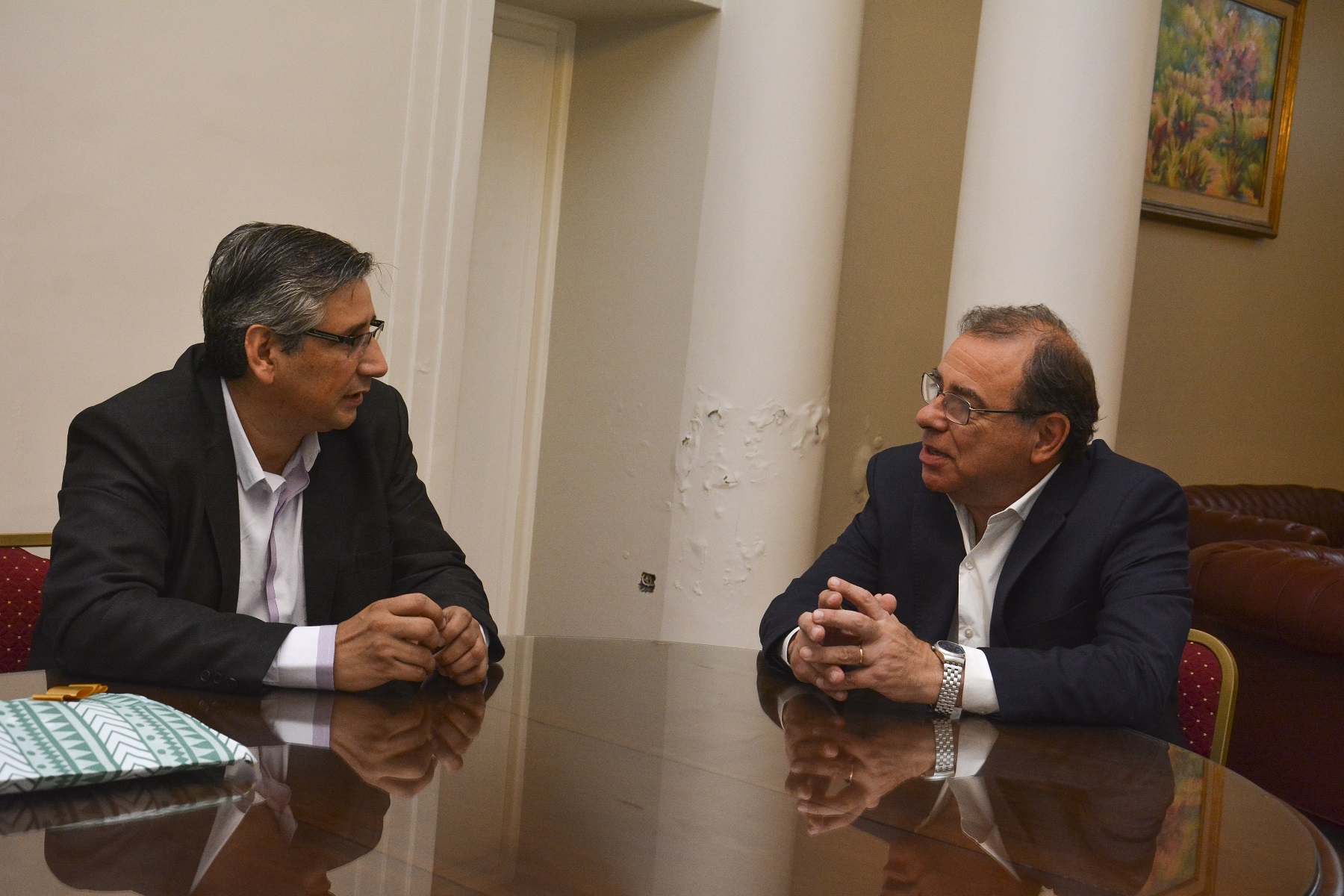 El intendente, Eduardo Tassano, recibió este viernes en el palacio municipal al gobernador del departamento paraguayo Guairá, Juan Carlos Vera Báez, quien se encuentra acompañando al elenco de danzas Panambi Rory que se presentará en la ciudad, en el marco de la Fiesta Nacional del Chamamé.