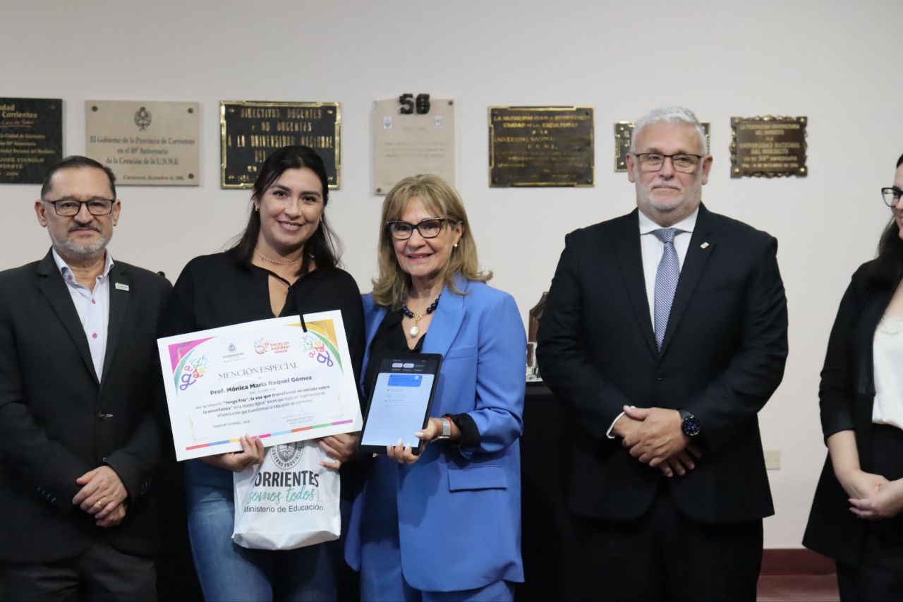 Los autores de los trabajos premiados recibieron, además de un diploma de reconocimiento por parte del Ministerio, y dinero en efectivo y una Tablet para el primer puesto por parte de la UNNE.