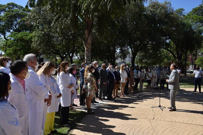 “El trabajo médico es, en gran parte, un trabajo de equipo y ni hablar en los hospitales, en los centros de salud”, destacó el intendente, quien junto al vice, participó del acto en el que se recordó a los trabajadores de salud que dejaron su vida en la época de la fiebre amarilla, como también se valoró la tarea diaria que llevan adelante actualmente los profesionales en materia sanitaria, en la lucha contra el covid.