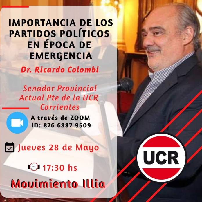 La Unión Cívica Radical de la provincia de Corrientes junto al Movimiento Illia de la capital correntina invitan a participar de este encuentro online que tendrá al doctor Ricardo Colombi, -actual senador provincial y presidente de la UCR-Corrientes- como protagonista.