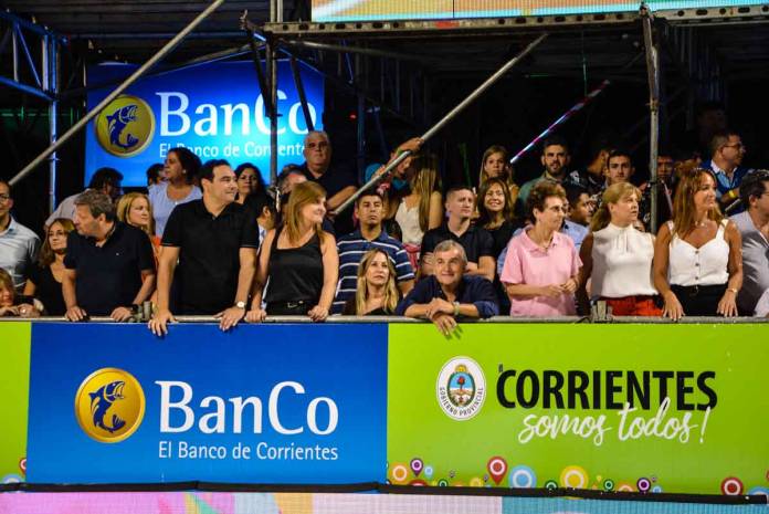 Allí los mandatarios provinciales pudieron observar el desfile de 15 comparsas del interior de Corrientes más las capitalinas Sapucay y Ará Berá. A las 3 de la madrugada, cuando faltaba una hora y media para finalizar el espectáculo, en un impass sobre la calzada, los animadores interactuaron con el público y le pasaron el micrófono a Morales, invitándolo a expresarse.