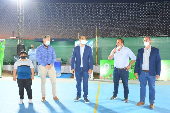 Seguidamente llegó hasta la sede de Sportiva, donde hace un tiempo atrás “asumimos el compromiso de iluminar la cancha y ahora lo concretamos”, con la inauguración de 8 torres de iluminación para el campo de fútbol de salón. En el lugar, Gustavo Valdés anunció que “quedamos con la Comisión Directiva que el año que viene vamos estar techando y poniendo piso de parquet a la cancha, de manera que tengan un lugar competitivo”.