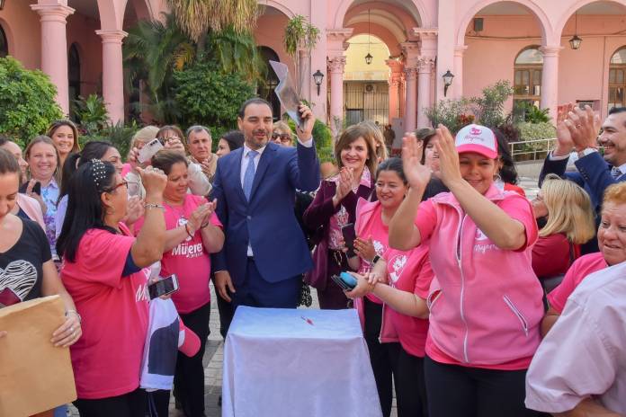 Posteriormente, desde el patio de Casa de Gobierno el gobernador procedió a la firma de la promulgación del Ley acompañado de un grupo de mujeres partidarias que agradecieron el envío del proyecto a las Cámaras Legislativas.