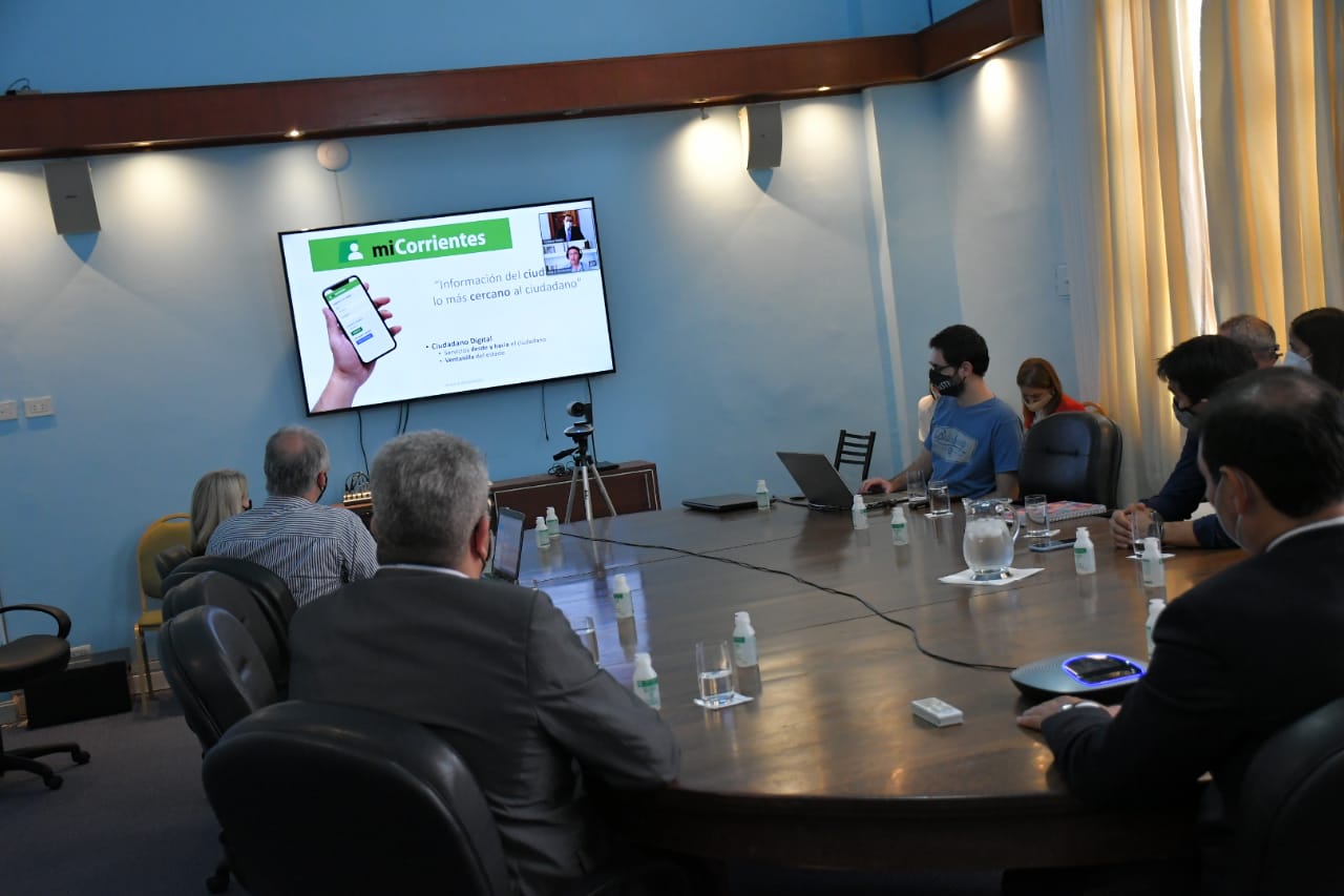 La reunión tuvo lugar en el salón Azul de Casa de Gobierno, pasado el mediodía, donde además estuvieron los ministros de Coordinación y Planificación, Horacio Ortega y de Desarrollo Social, Adán Gaya, el titular de SuSTI, Federico Ojeda y técnicos de esta y otras áreas de distintos ministerios. “Uno de los grandes cambios que incorporamos para avanzar en esta modernización del Estado es el desarrollo de este nuevo portal teniendo como base el concepto de ‘ciudadano digital’, entendiendo que en la actualidad, en mayor o menor medida, todas las personas incorporamos la tecnología en nuestros hábitos diarios, por la tanto el Estado no puede estar ajeno a esta nueva forma de vida”, indicó Ojeda como introducción a las explicaciones que brindaron los técnicos que intervienen en el desarrollo web del ‘Portal Ciudadano Mi Corrientes’.