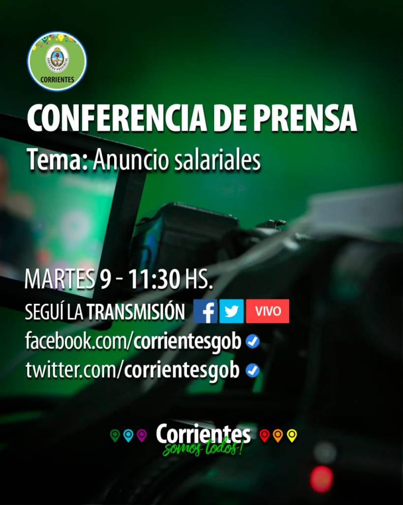 Este martes 9, el ministro de Hacienda y Finanzas Marcelo Rivas Piasentini dará una conferencia de prensa con anuncios salariales para activos y pasivos provinciales. Será a las 11.30, en Salón de Acuerdos del edificio ministerial en Salta y Mayo de la ciudad de Corrientes.