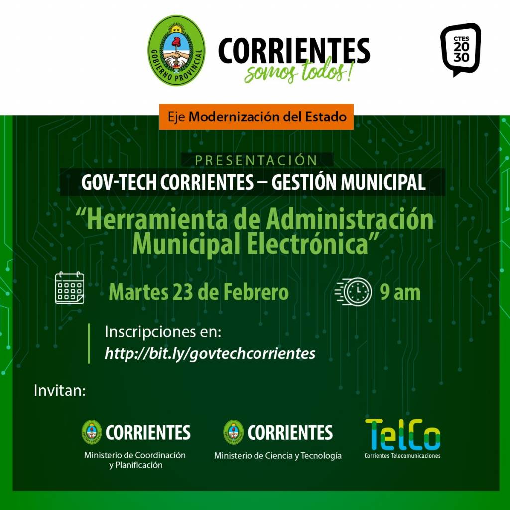 ??En el marco del eje modernización del Estado, el Gobierno Provincial presentará este martes a las 9, en forma de teleconferencia on line, una herramienta para la Administración Municipal Electrónica, el cual le dará a las gestiones comunales correntinas la dinámica y fluidez, que los tiempos actuales requieren.