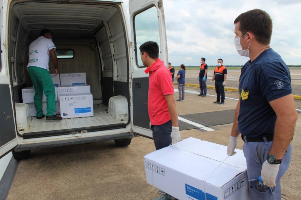 Personal del Ministerio de Salud de la Provincia de Corrientes recibió la entrega respectiva en el aeropuerto Piragine Niveyro, ubicado en la capital provincial.