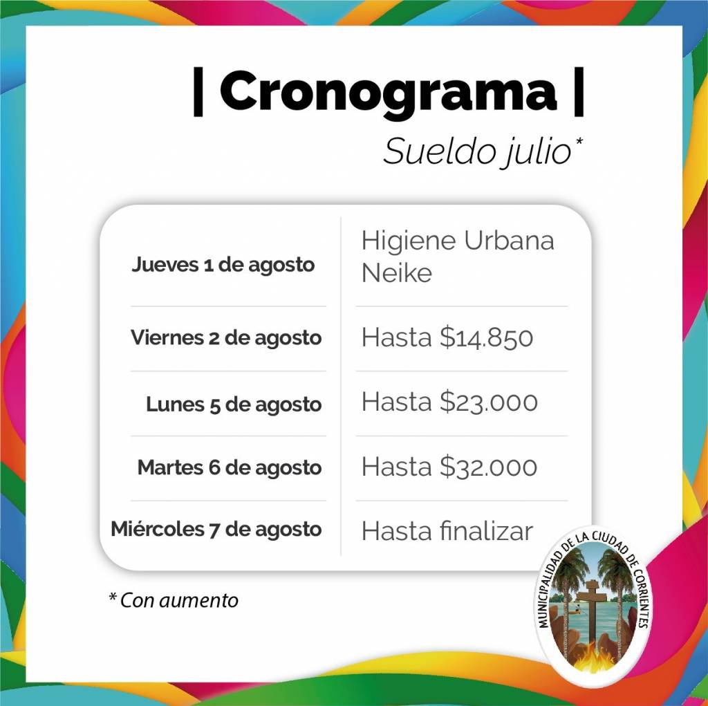 El ejecutivo municipal confirmó que el jueves 1 de agosto inicia el pago de haberes a los empleados dependientes de la municipio capital