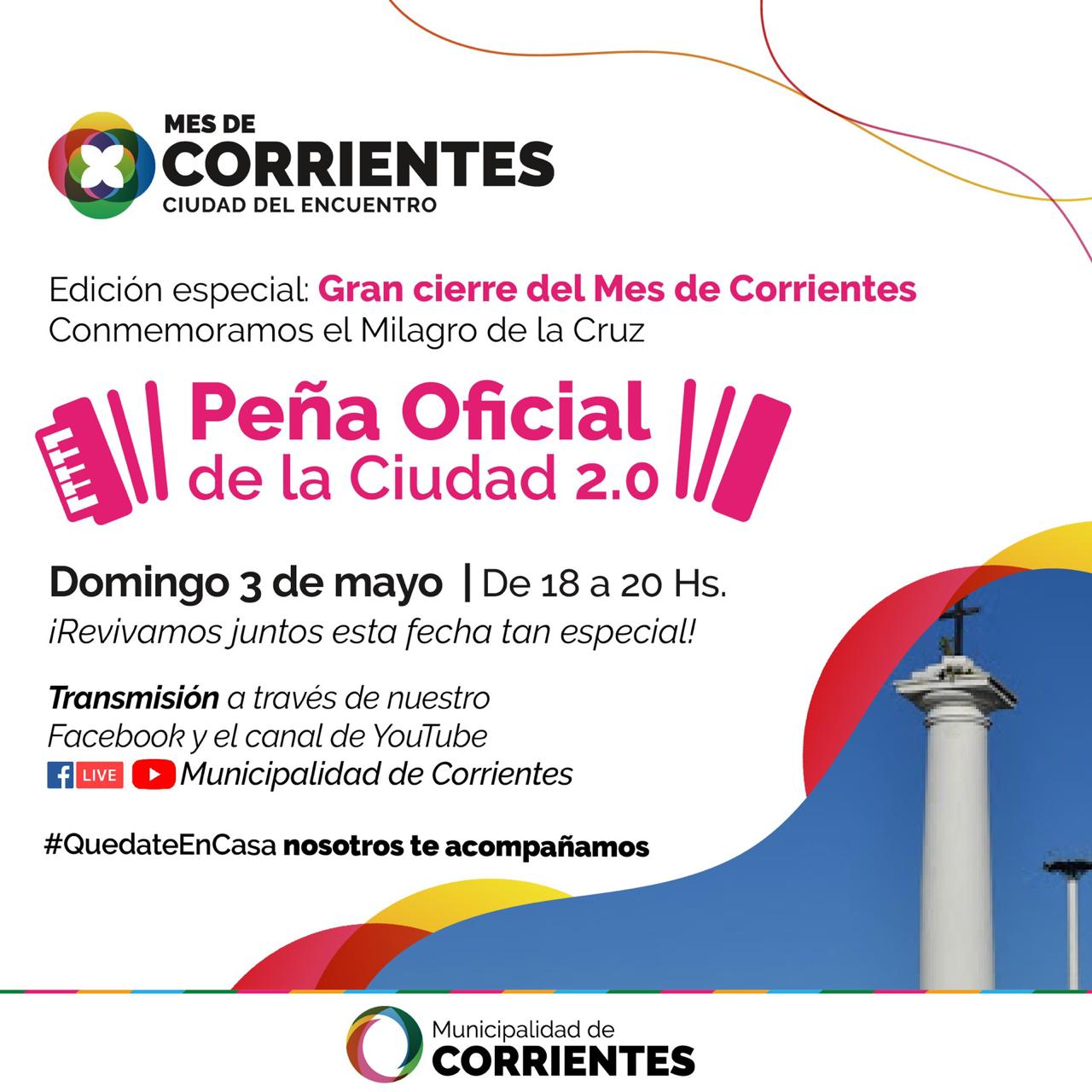 Con la realización de la Peña Oficial 2.0, la Municipalidad cerrará este domingo el “Mes de Corrientes” que tuvo una gran variedad de actividades virtuales, debido al aislamiento social por la pandemia del coronavirus.