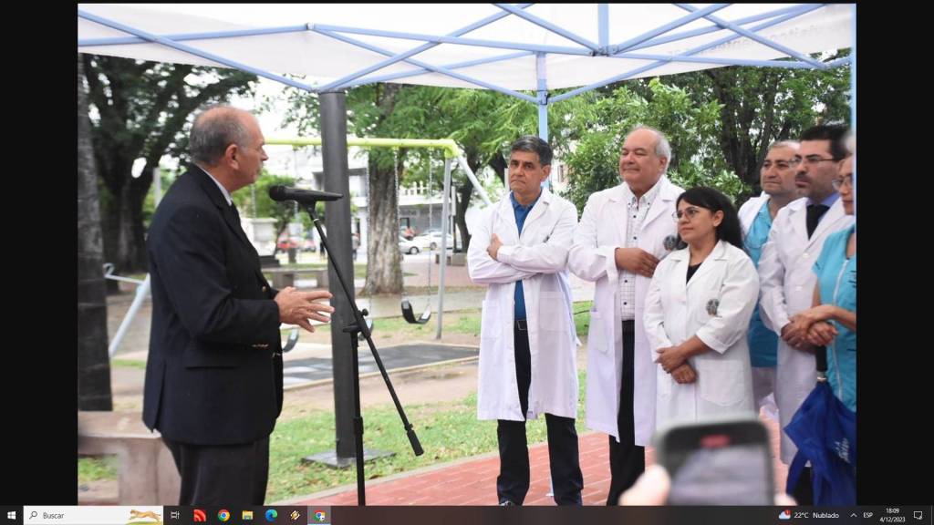 Por otra parte, Lanari resaltó: “A pesar de ser domingo, de la lluvia, decidimos estar en plaza La Cruz al pie del monumento de Vidal, médico que murió durante la epidemia de fiebre amarilla, en un recordatorio a todo el personal de salud, médicos y enfermeros, que han dado su vida por un paciente. En donde han afrontado la pandemia de Covid”, recordó.