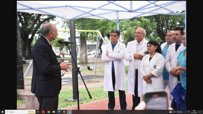 “Ustedes están todos los días en la primera línea de la salud, por vocación y junto al paciente, al necesitado, cada jornada, tendiéndole la mano”, destacó en su mensaje el viceintendente Emilio Lanari al encabezar el acto desarrollado en plaza La Cruz, al pie del monumento al doctor José Ramón Vidal, médico correntino que falleció durante la epidemia de fiebre amarilla. Al conmemorarse este domingo el Día del Médico/a, la Municipalidad de la ciudad de Corrientes realizó un acto de homenaje y reconocimiento al personal de la salud, representados en la ceremonia por profesionales que se desempeñan en las Salas de Atención Primaria de la Salud (SAPS), que funcionan bajo la órbita municipal.
