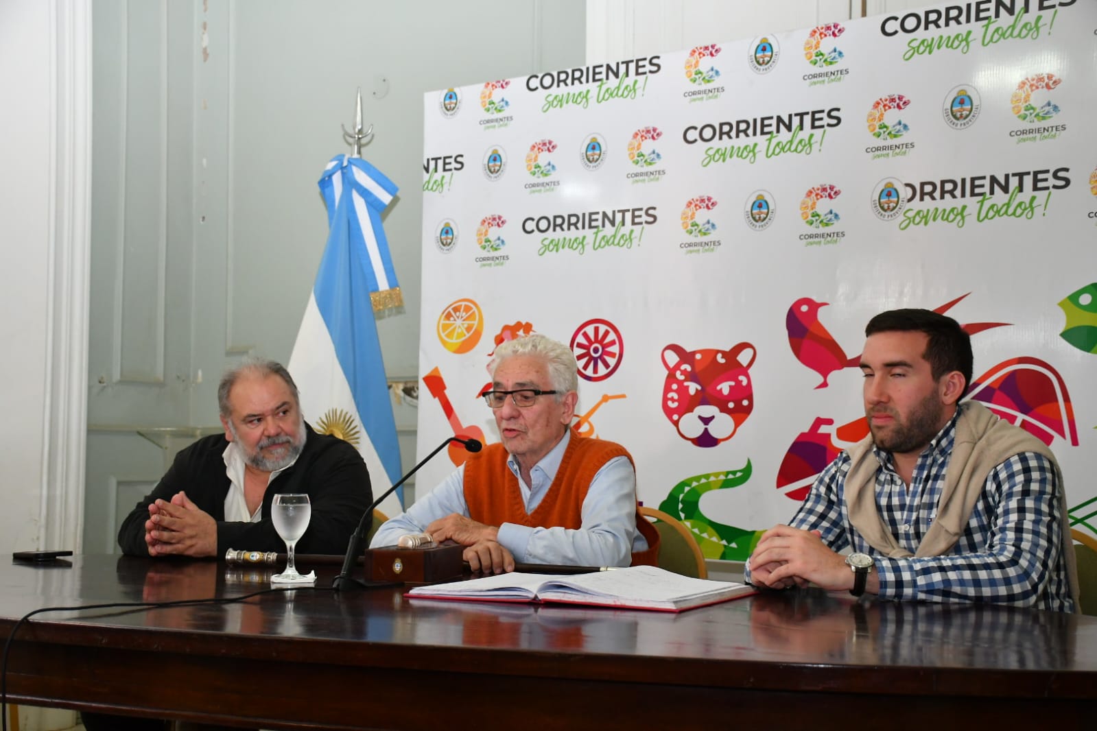 En horas del mediodía en el Salón Verde de Casa de Gobierno se llevó a cabo la conferencia de prensa encabezada por el orfebre argentino de prestigio internacional, Juan Carlos Pallarols, quien explicó los materiales de origen correntino que serán utilizados para la confección del Bastón Presidencial.