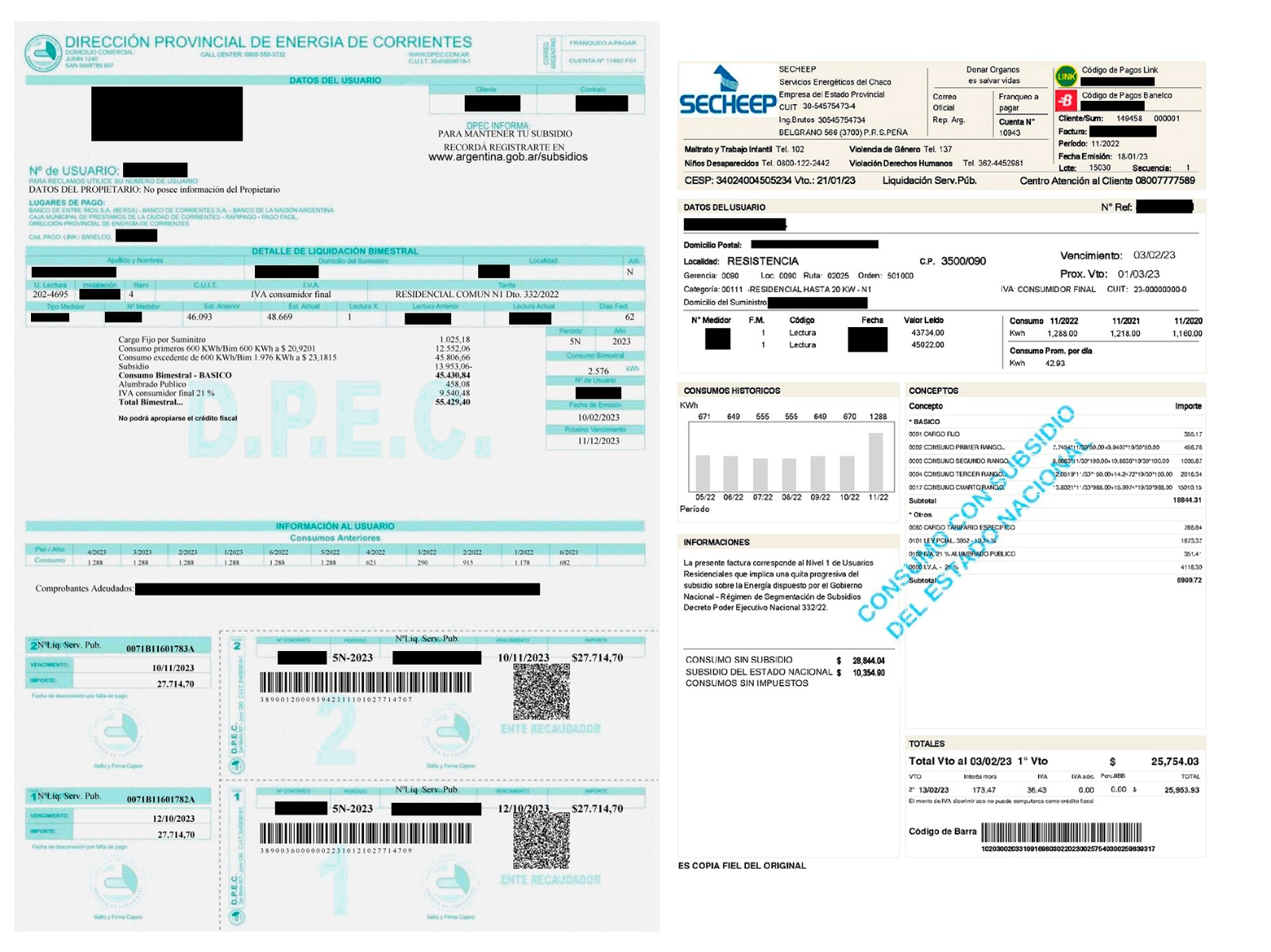 En todo este contexto, y como prueba de que el “Partido Justicialista de Corrientes – TODOS Corrientes” MIENTE, seguidamente se muestran dos facturas de energía eléctrica, de usuarios con similares consumos, uno en la Provincia del Chaco (facturación mensual) y el otro en la Provincia de Corrientes (facturación bimestral). De la comparación de ambos, surge evidente la mendacidad de lo expresado por el “Partido Justicialista de Corrientes – TODOS Corrientes”; a lo que debe agregarse que la Provincia del Chaco ha convocado a Audiencia Pública para el tratamiento de los valores tarifarios para el consumo de energía eléctrica en la Provincia, para el 24 de febrero del corriente año, en la localidad de General San Martin (Chaco), de lo que se infiere, con seguridad, que los costos de la tarifa de los Chaqueños será incrementada, dato este que el “Partido Justicialista de Corrientes – TODOS Corrientes” olvidó mencionar en su documento.