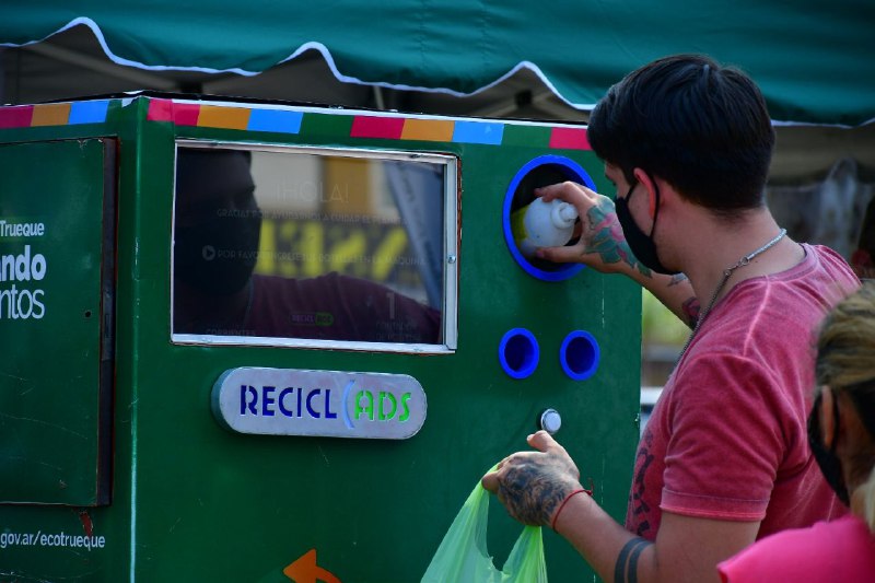 La propuesta verde, que se viene implementando con una positiva respuesta de los vecinos de los diferentes barrios de la Ciudad, consiste en el canje de residuos reciclables por premios sustentables, así como el canje de botellas PET por créditos Sube.
