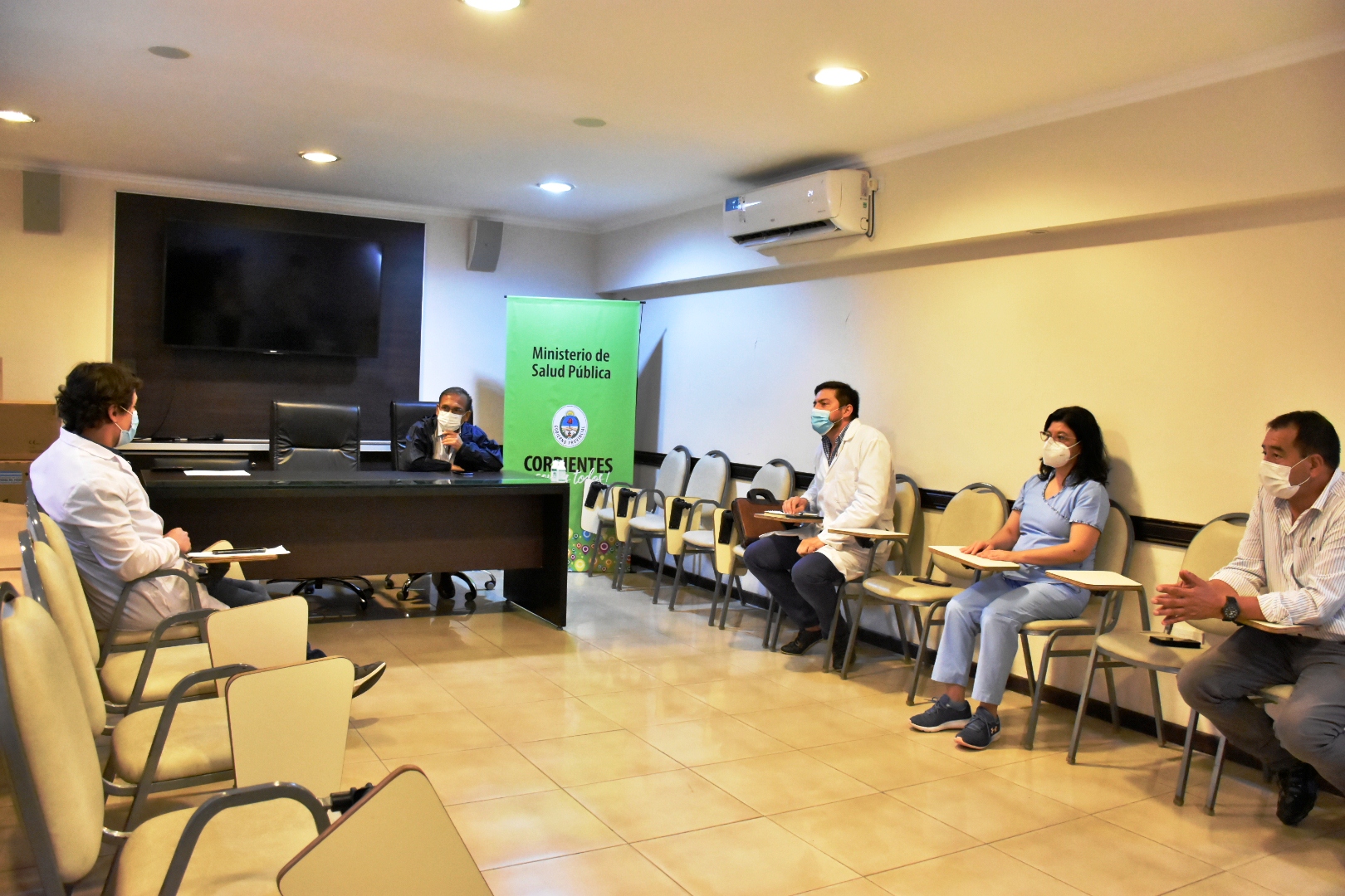El encuentro se llevó a cabo en la sala de situación de la cartera sanitaria y por parte del Hospital de Campaña estuvieron su director, Alberto Arregín; la directora del Área Crítica, Analía Giménez; el coordinador del área de Infectología, Fernando Achinelli; y el jefe de Departamento de Laboratorio y Bioquímica Clínica, Diego Farizano.
