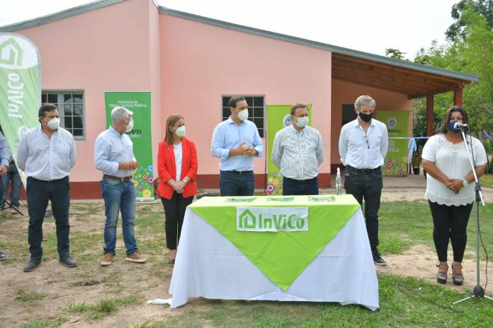 Continuando con su visita al suroeste de la provincia, el gobernador Gustavo Valdés entregó tres viviendas de Invico en la zona rural de Carolina y prometió la construcción de más casas. En la localidad también firmó un convenio con el Municipio para avanzar en la pavimentación de la avenida San Antonio, obra que demandará una inversión de 75 millones de pesos por parte del Estado provincial.