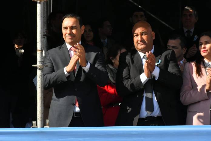 El acto central que incluyó el tradicional Desfile cívico – militar, se desarrolló en la plaza San Martín. La ocasión resultó propicia para que el intendente municipal, Néstor René Buján le entregue al gobernador Gustavo Valdés la respectiva resolución declarándolo “Huésped de Honor”, junto al resto de la comitiva oficial.