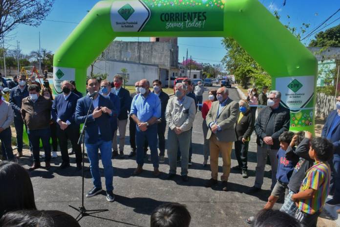 En el marco del Programa de Mejoramiento Barrial, el gobernador Gustavo Valdés, acompañado por el intendente Eduardo Tassano, inauguró este mediodía 21 cuadras de pavimento con concreto asfáltico en el barrio Juan de Vera, obras llevadas adelante por el Ministerio de Obras y Servicios Públicos, a través de Vialidad Urbana, que forman parte del convenio de colaboración con la municipalidad de Corrientes.