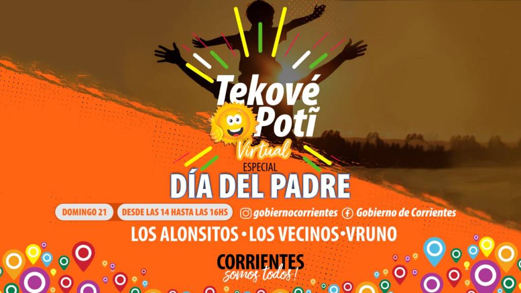 Está todo preparado para que el regreso del Tekové Potí, sea extraordinario, y vuelva a mostrar que se trata de una propuesta arraigado en la comunidad correntina, que integra a todos los sectores de la comunidad, con múltiples actividades, a la vez que está llamada en esta nueva forma de comunicarse, de manera virtual, en una gran posibilidad para las familias que quieran protagonizar diferentes actividades sociales y recreativas y aunque sea por momentos dejar atrás lo negativo que ha generado la Pandemia. La propuesta es el domingo de 14 a 16, por las redes sociales del Gobierno y libre para todos los canales que decidan tomar la señal, para celebrar juntos el día del Padre, pero anticipan que esto es solo el inicio, porque se vienen nuevos eventos.