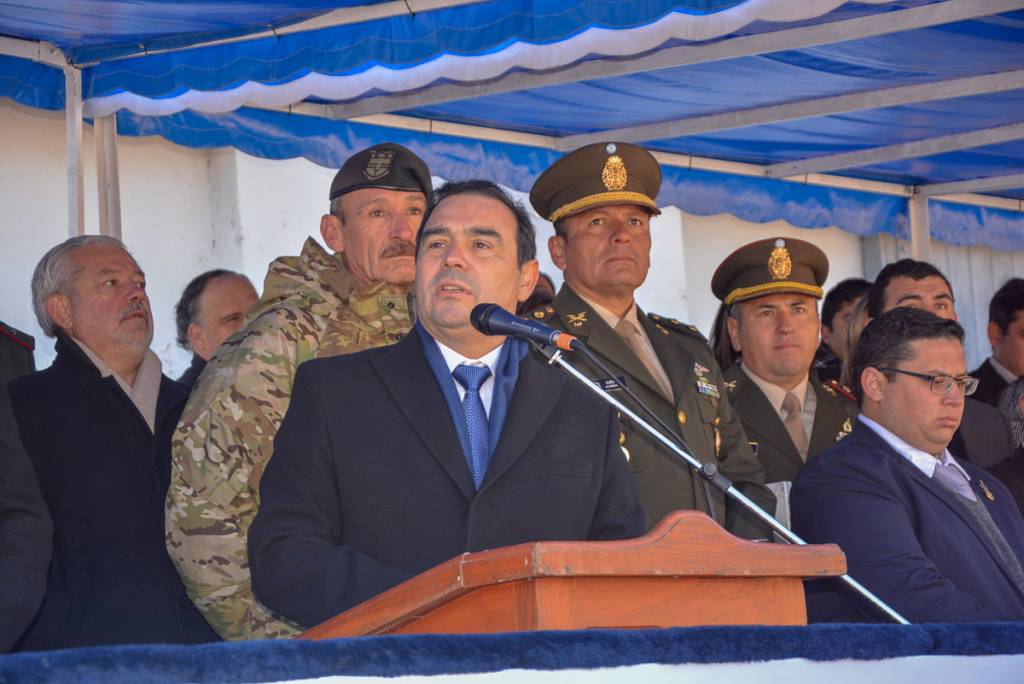 Luego, Valdés junto al Jefe del Estado Mayor del Comando de la Primera División del Ejército, coronel Miguel Bianco y el intendente municipal Diego Caram hicieron el tradicional recorrido y saludos a la formación 5 de julio.