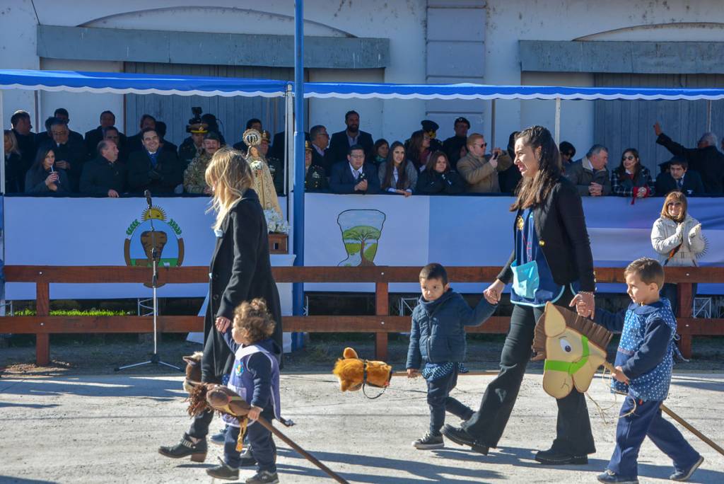 Inmediatamente, luego de los discursos, el mayor Esteban Guillén, adoptó las medidas para el comienzo del desfile cívico-militar, en las que participaron escuelas primarias y secundarias, jardines de infantes, cdi, instituciones de la comunidad, el ejército, la policía de la provincia, veteranos de Malvinas y demás organizaciones gauchescas que engalanaron el evento.
