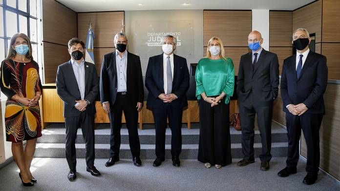 “Yo una y otra vez recurro al Estado de Derecho porque soy un abogado. Me formé en la Universidad de Buenos Aires, amo la lógica del Estado de Derecho, no quiero creer que no es posible vivir en un estado de derecho, no quiero creer que los pícaros nos ganen, no quiero creer que los sinvergüenzas se salen con la suya”, sostuvo el mandatario desde Avellaneda, acompañado por el gobernador bonaerense Axel Kicillof.