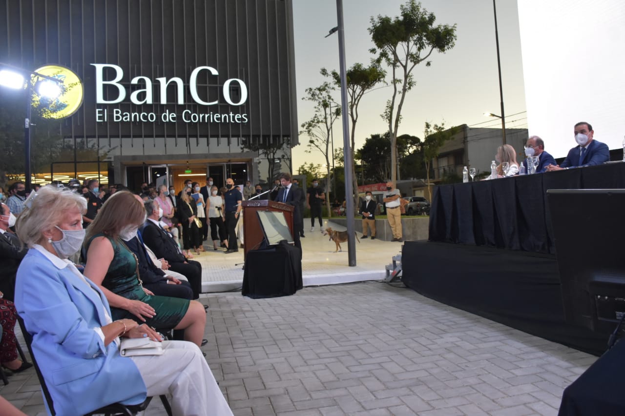 El gobernador Gustavo Valdés encabezó el acto de inauguración de la nueva sede del Banco de Corrientes. Este corte de cintas es la primera etapa del Centro Administrativo que albergará otras reparticiones públicas de la provincia.