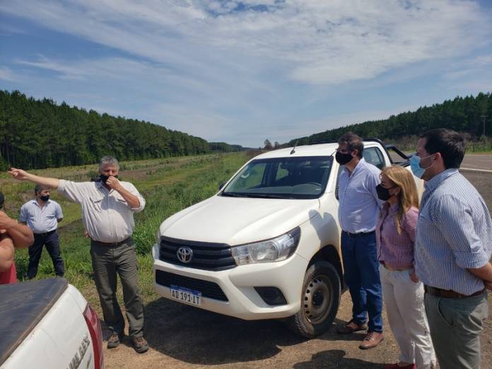 La secretaria de Valor Agregado, Verónica Storti, junto al director de Recursos Forestales del Ministerio de Producción, Roberto Rojas realizaron un relevamiento tras los incendios registrados en la zona de Santa Tecla, por Ruta Nacional N°120, en el departamento Ituzaingó. El foco ígneo, que se inició el pasado 31 de diciembre y se prolongó durante varios días, afectó a poco más de 4.000 hectáreas de bosques implantados, según las primeras estimaciones.